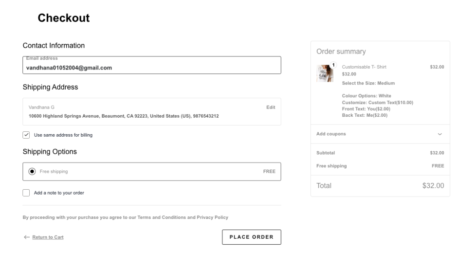 - Checkout Page: The selected add-ons are shown along with the product details, ensuring customers can verify the chosen options before placing the order.