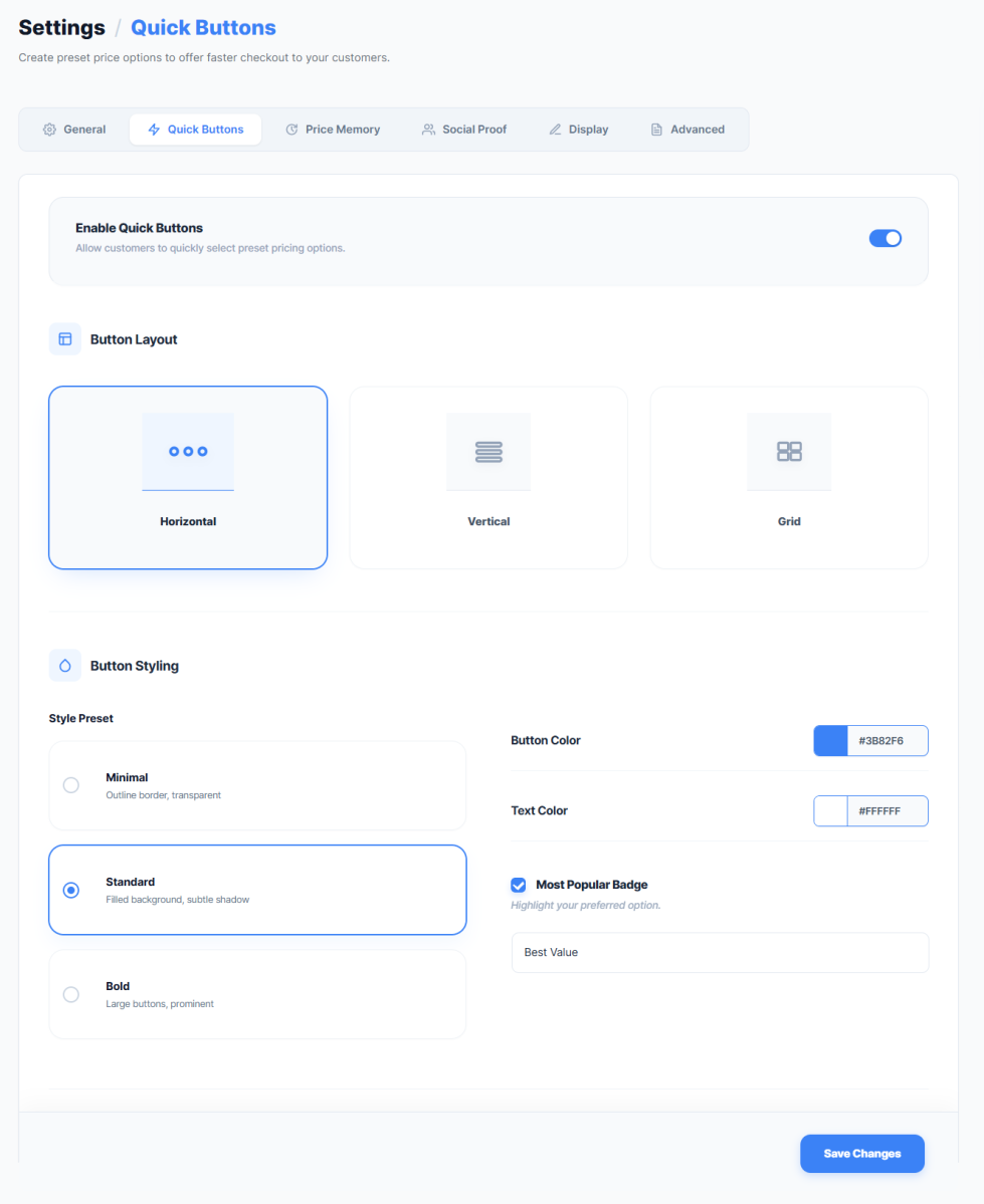 “Most Popular” Badge — Highlight one button to guide customers toward your preferred tier: