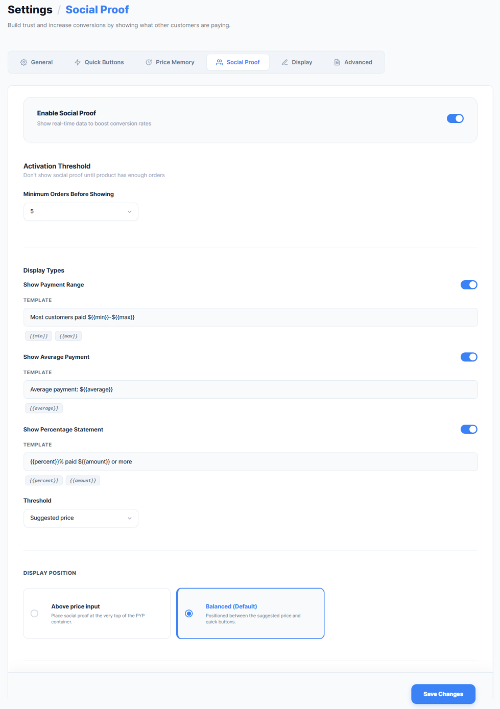 - Check it is enabled at Pick Your Price > Settings > Social Proof