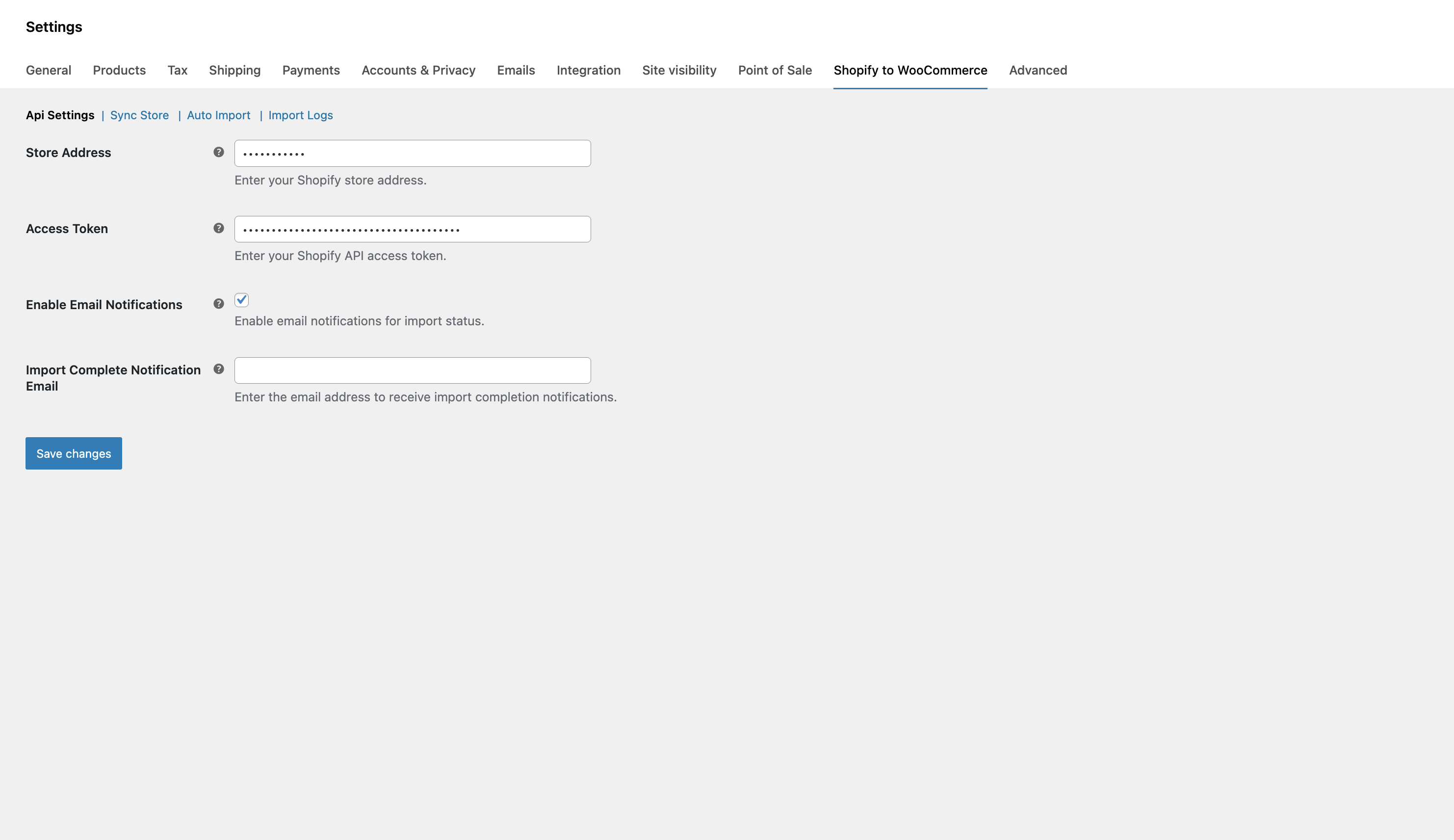 ↑ Back to topAfter activation, you will find a new Settings link. Click on this link, and you will be redirected to the “Shopify to WooCommerce” tab located under WooCommerce → Settings.. This tab contains four sub-sections: