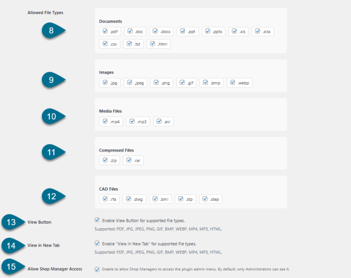 - Enable View Button: Enable the view button to view the following file types: