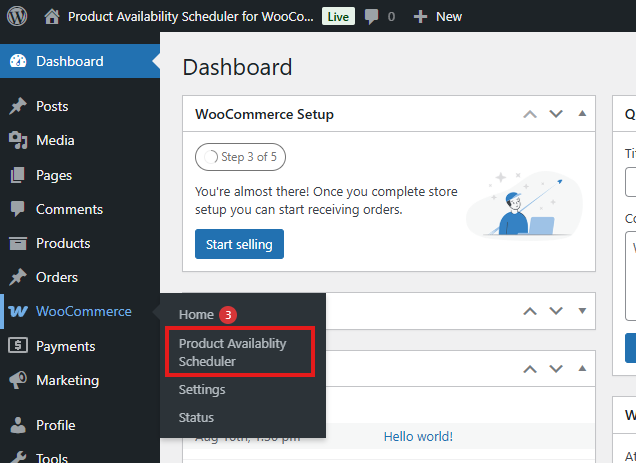 After installing the Product Availability Scheduler for WooCommerce, you can start using it right from your WordPress dashboard.