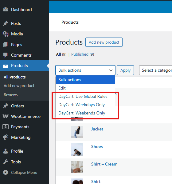 - Weekdays Only – Restrict selected products so they’re only available Monday to Friday.
