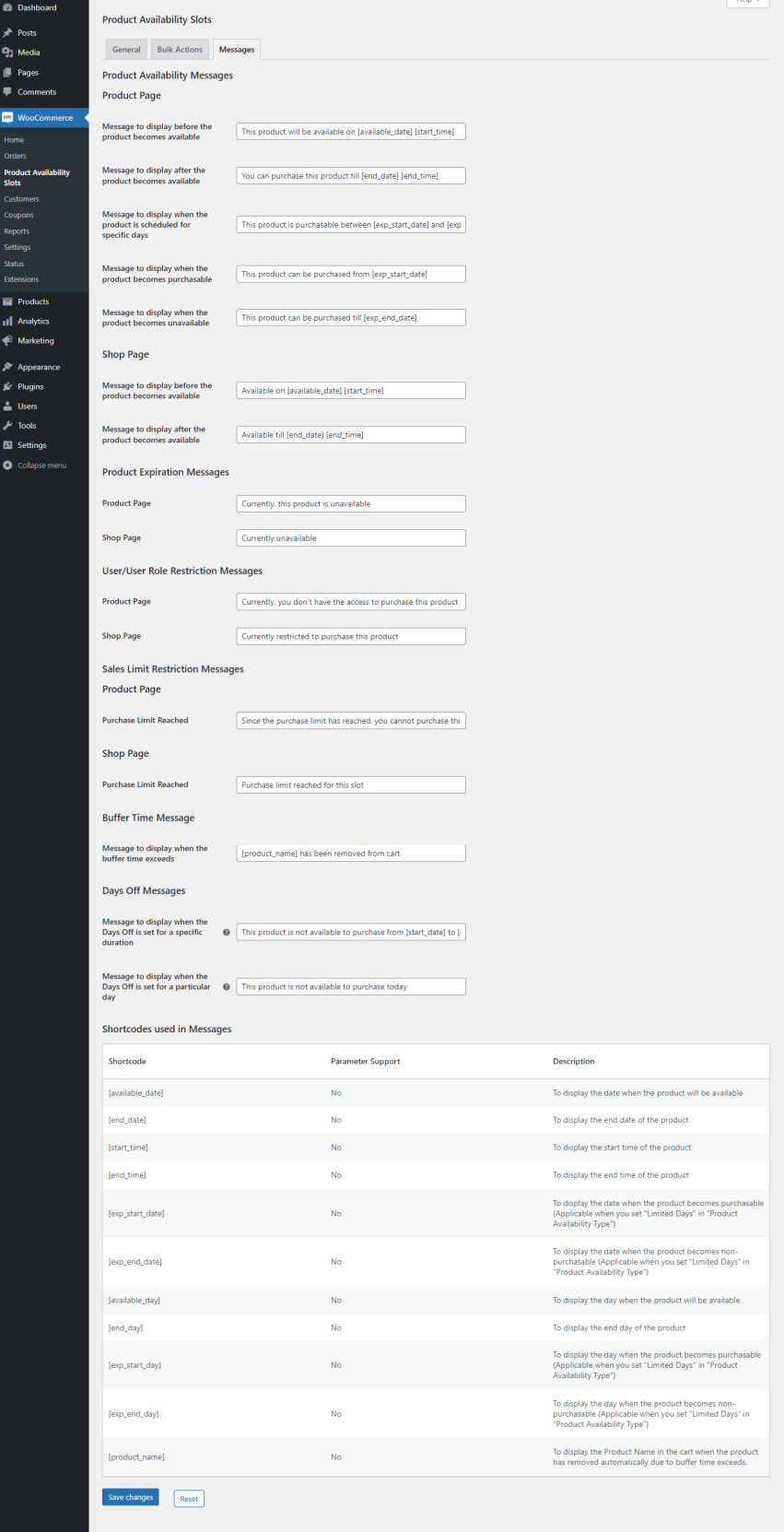 ↑ Back to topTo set up the extension, go to WordPress Admin > Product Availability Slots