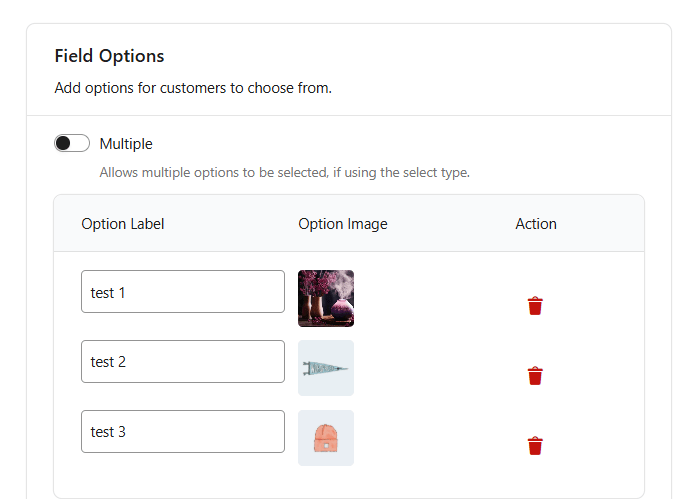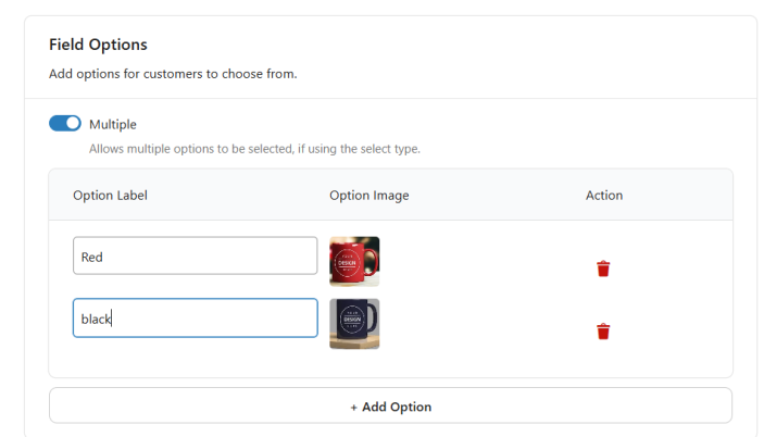 - Checkbox/Select/Radio/Multi Checkbox Type Options