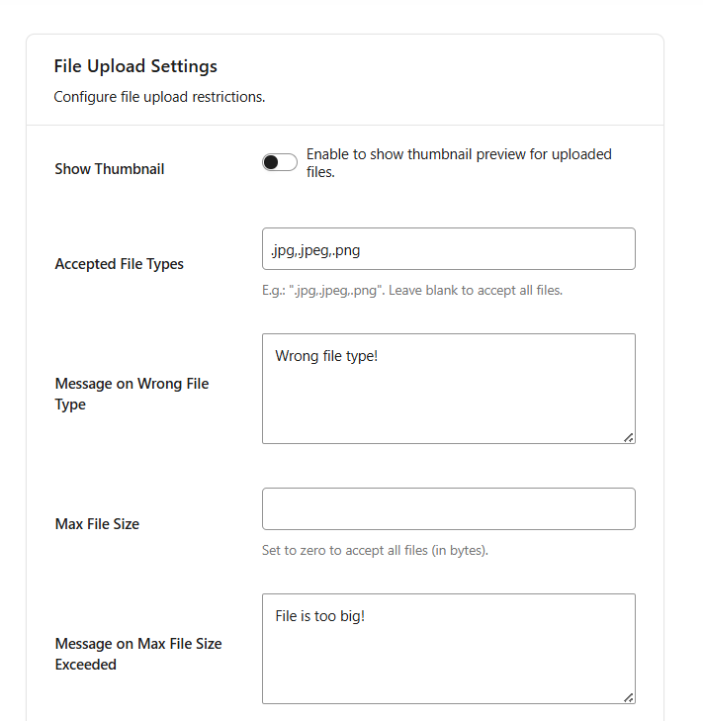 ↑ Back to topThe settings under this section is mainly used for Number and Range input field type where you have to set the minimum or maximum number input or maximum length for the input field etc. Let us understand each of these settings separately.