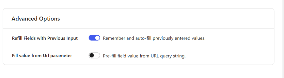 This way, Refill Fields with Previous Input setting enables auto population of previous input value in the input field on the front end. By default, this option is enabled.