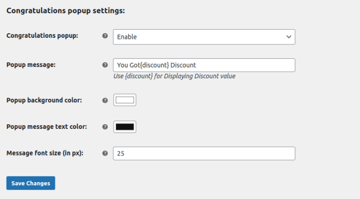 ↑ Back to top- Congratulations popup: (Enable or disable congratulations popup)