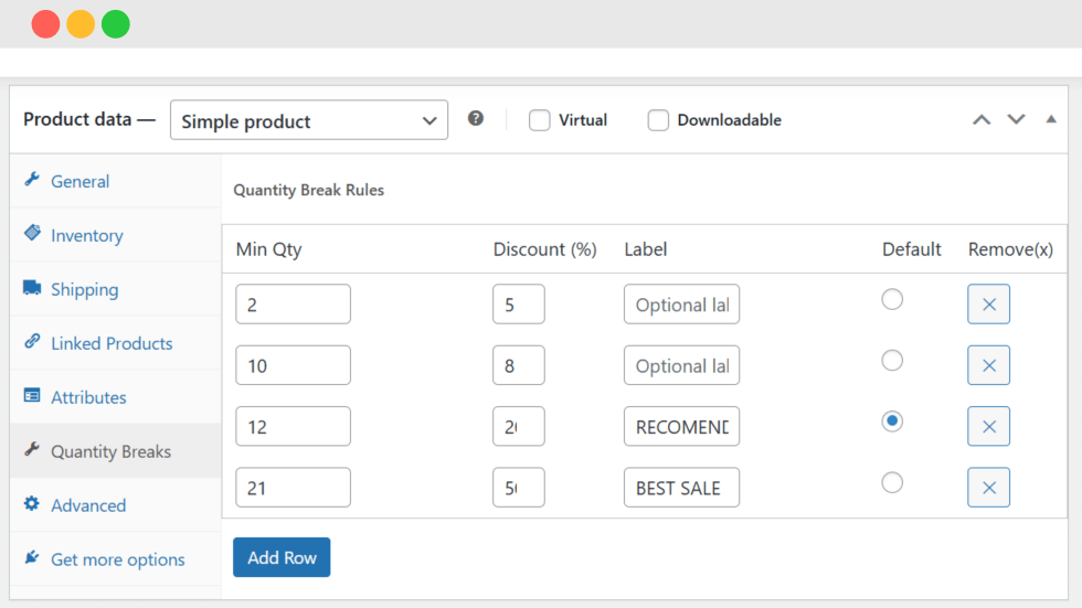 - Configure your quantity break rules