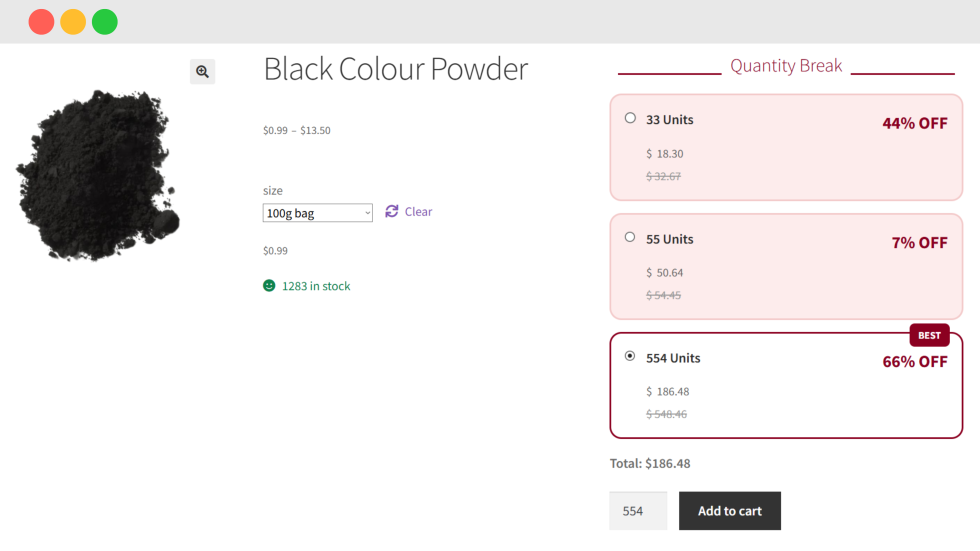 WooCommerce Quantity Breaks & Bundle Discount Boost your store’s revenue with smart, automatic quantity-based pricing. Encourage customers to buy more by offering bulk discounts, highlighting recommended tiers, and always applying the best available price no coupons required.