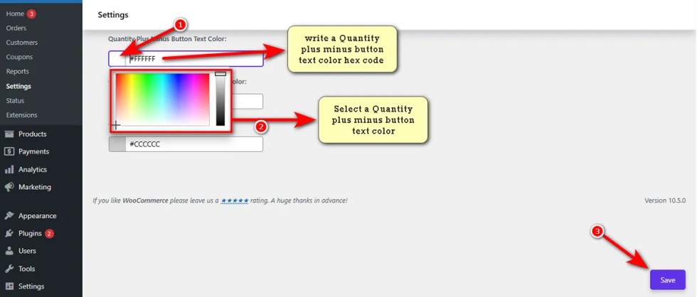 This option lets you apply a custom background color to the plus (+) and minus (-) buttons found in the quantity input field inside the variation table of a variable product.