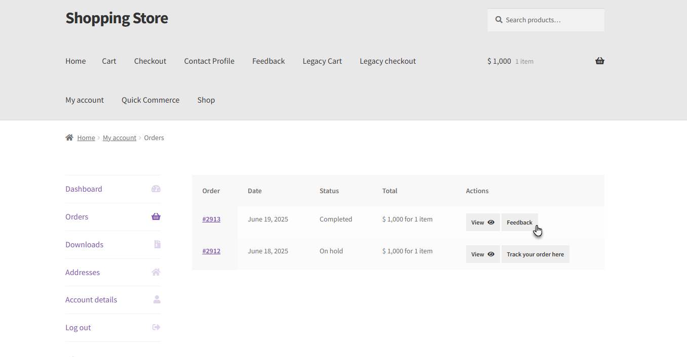 - Block Sorting: The status will proceed based on the sorting order configured by the admin in the Order Tracking block.