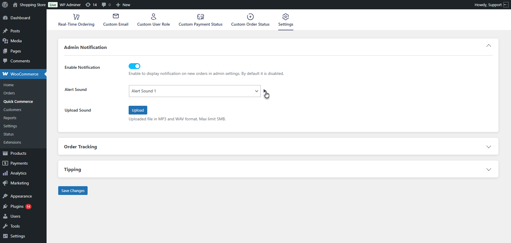 - The admin can also upload a custom alert sound from their local system using the Upload Sound option.