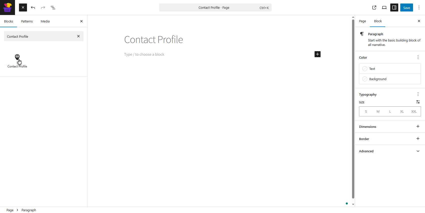 - The Contact Profile will be added to the page. Click on the Save button to apply changes.