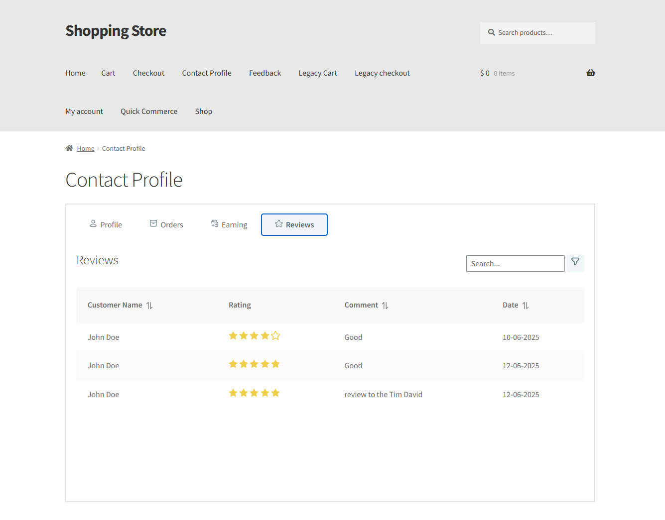 - In the Reviews tab, they can view customer ratings and feedback shared through the feedback form.
