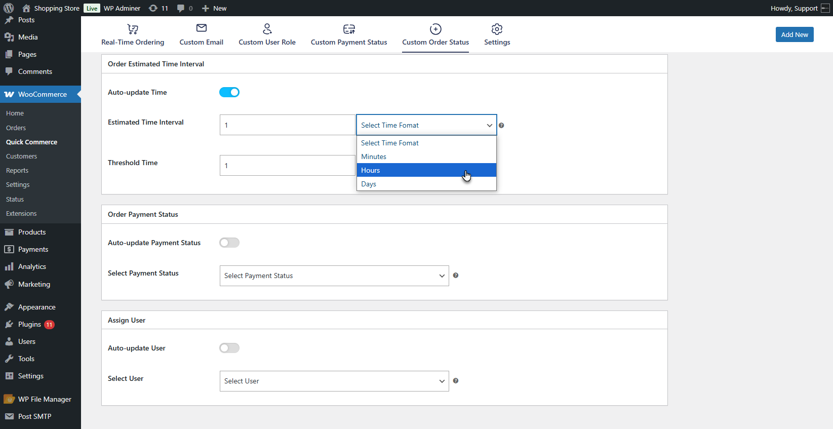 - In the Order Estimated Time Interval metabox, enable Auto Update Time to have the status automatically update.