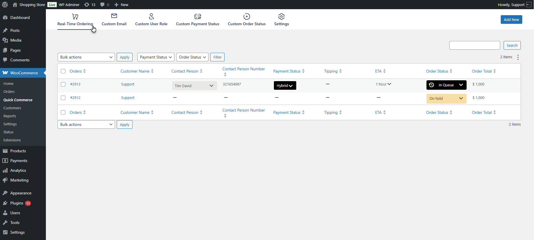 ↑ Back to top- This feature enables admins to create and assign custom payment statuses that accurately reflect in real-time ordering.
