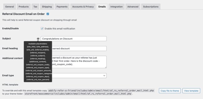 ↑ Back to topGo to WooCommerce > Refer a Friend > Referrer Discounts tab to access referrer settings. Here you can customize the following options: