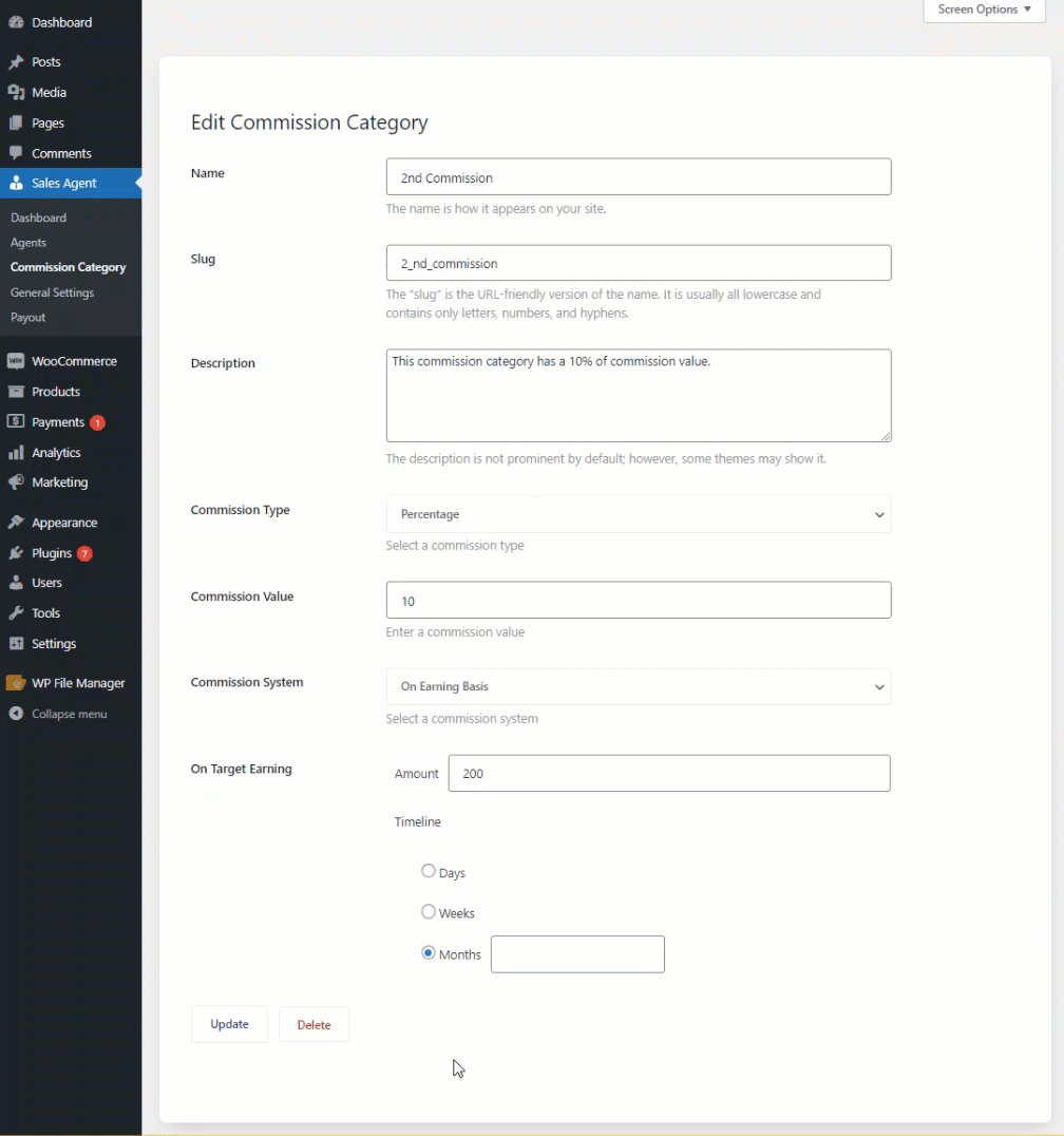 - Go to Admin Dashboard => Sales Agent => Commission Category.
