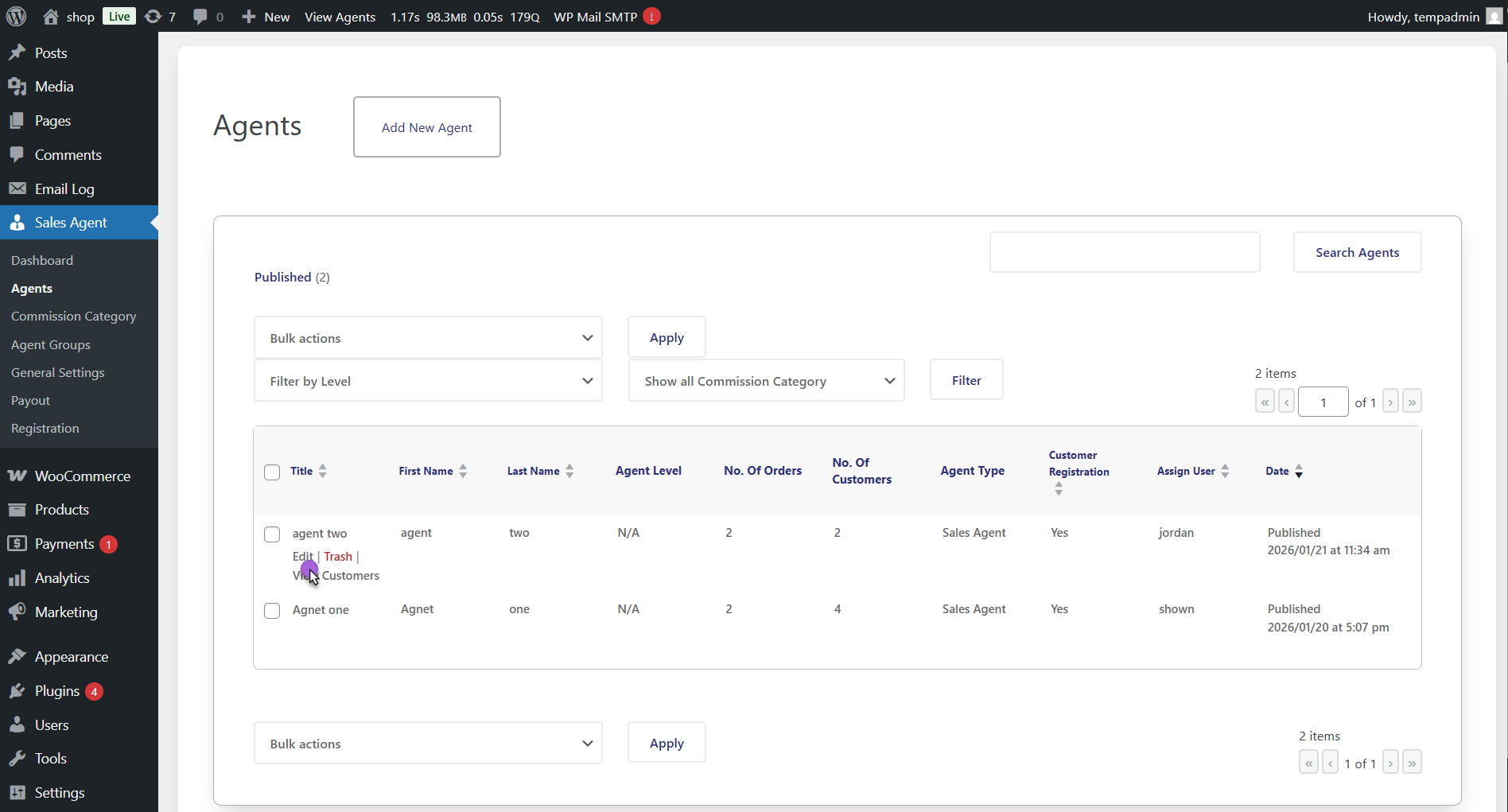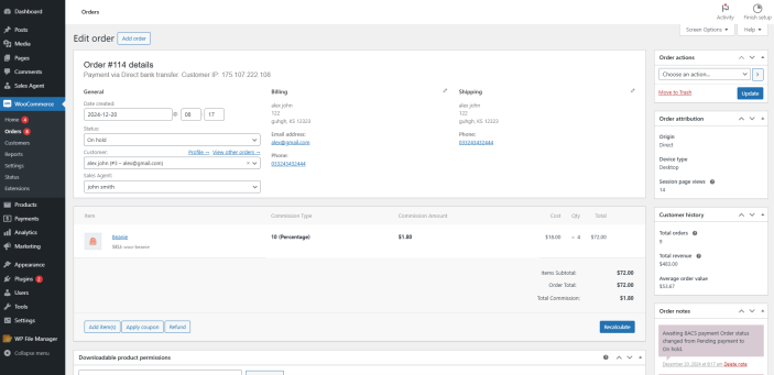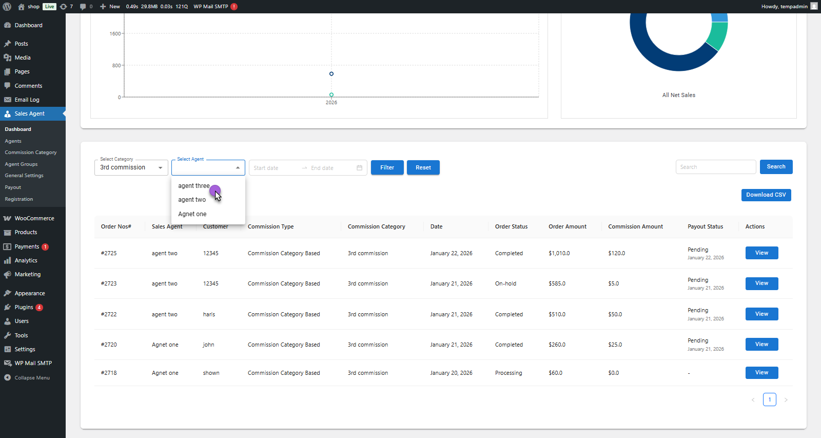 Sales Agent For WooCommerce manages sales agents and their customers. Sales agent for WooCommerce gives you everything you need to calculate commissions on every order.