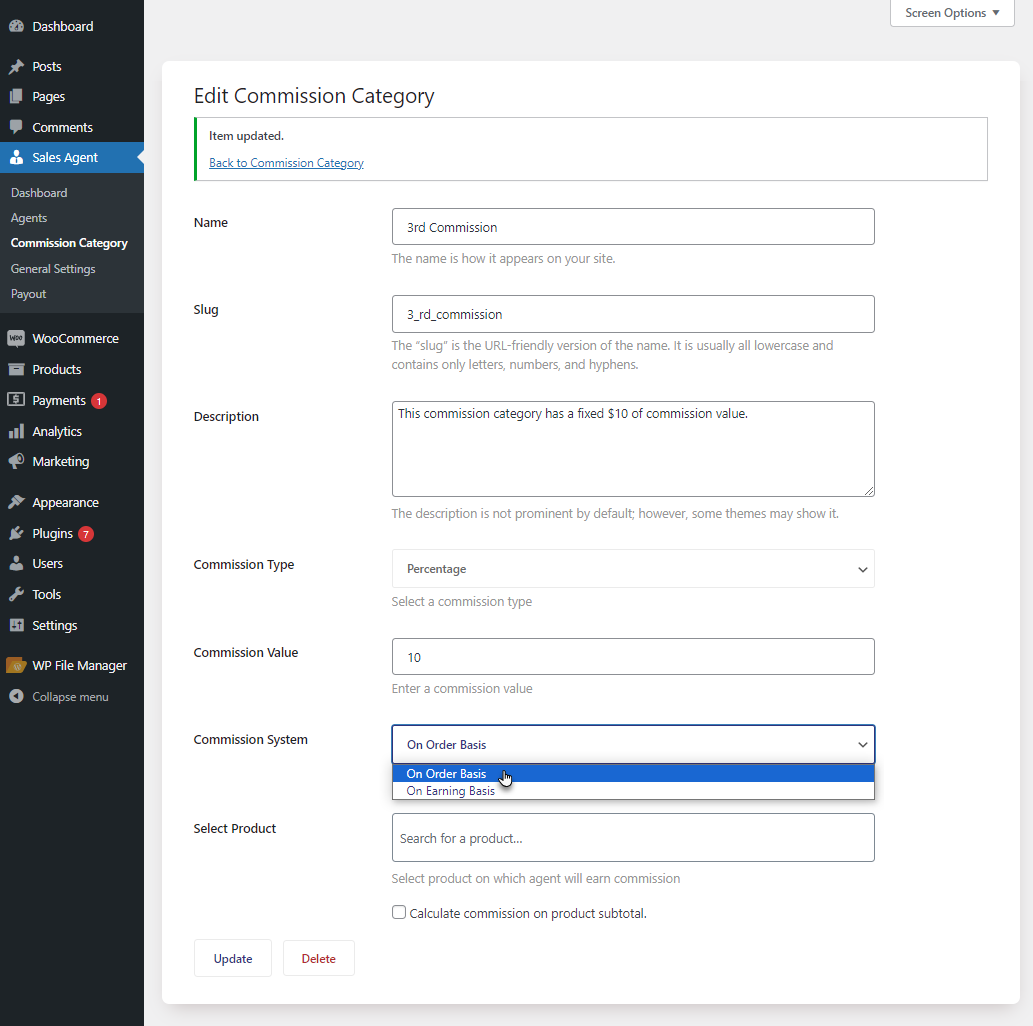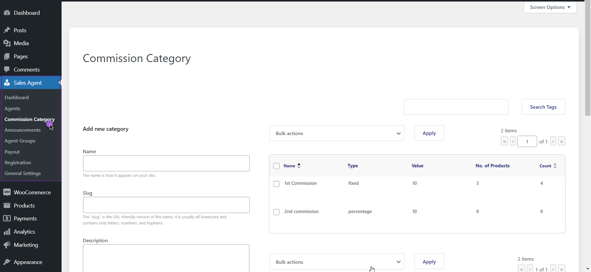 - Go to Admin Dashboard => Sales Agent => Commission Category.