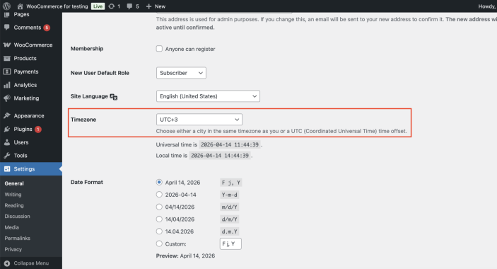 You can change the global time settings for your timers in the general plugin settings. To do this, navigate to Settings -> Timezone.