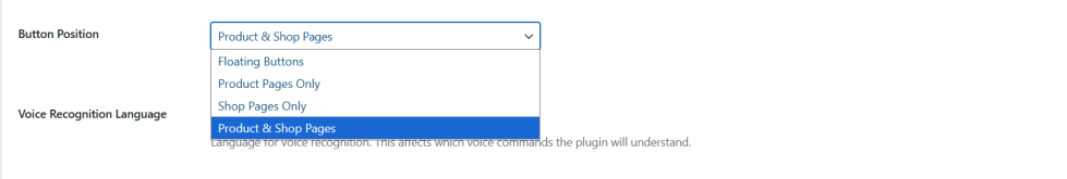 - Language settings determine the speech recognition API’s locale, improving accuracy for your store’s primary customer base.