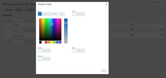 To assign a color to the attribute terms, click ‘Setup colors’: