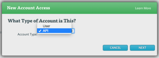 - Click Add new user, uncheck Email user with account access instructions, choose API User and provide an email and descriptive name for the integration.