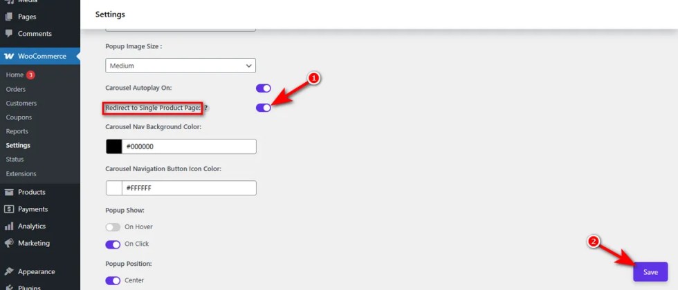 So, toggle on the “Redirect to Single Product Page” switch and hit the ‘Save’ button. This setting allows you to enable redirect to a single product page.