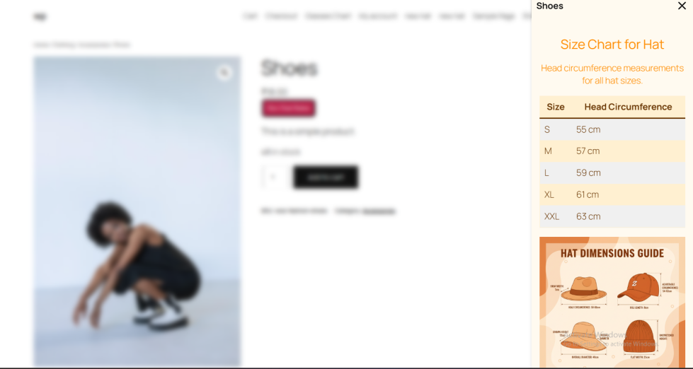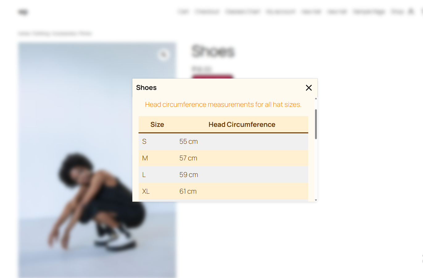 The plugin provides flexible display modes so the size chart integrates naturally with your product pages.