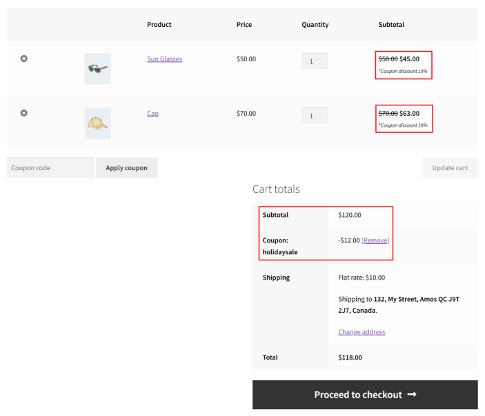 ↑ Back to topWhen a discount coupon is applied, customers will see: