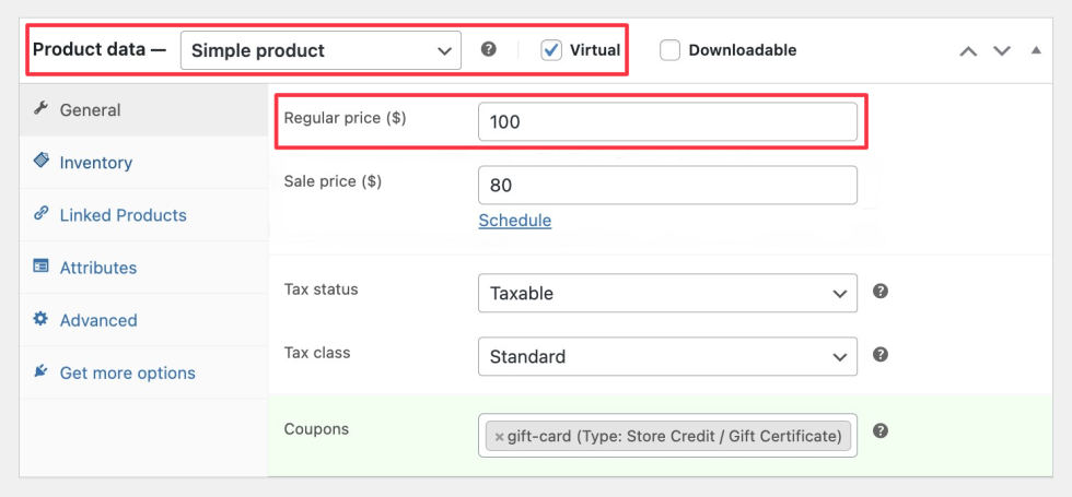 - Under Regular price, specify the value of the gift card that you want to issue.