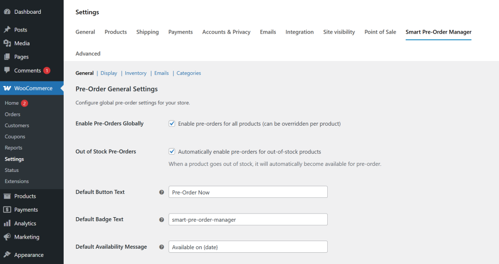 ↑ Back to topSettings are located at WooCommerce → Settings → Smart Pre-Order Manager.