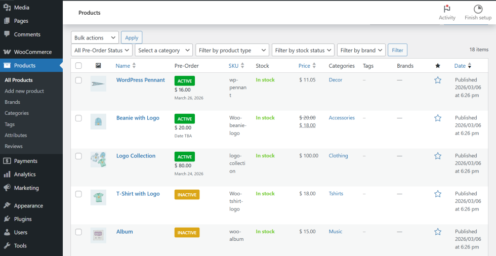 - Quick Edit: Quickly enable or disable pre-orders without opening the full product editor.