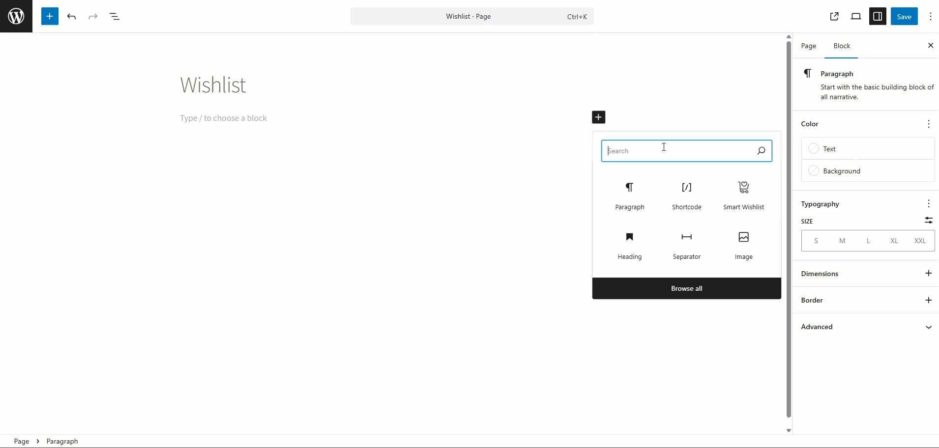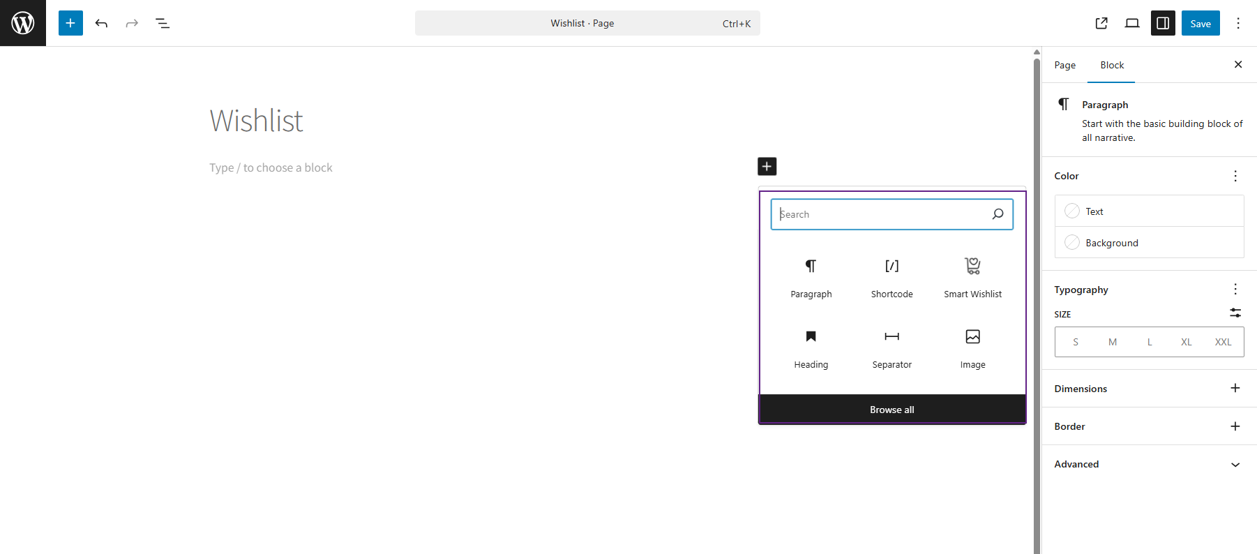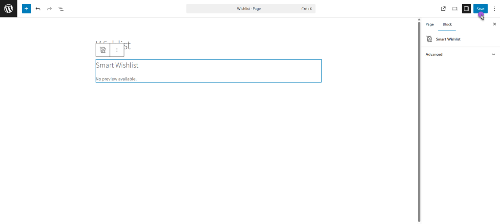Instead of using a shortcode, the admin can also insert the wishlist using the WordPress Block Editor.