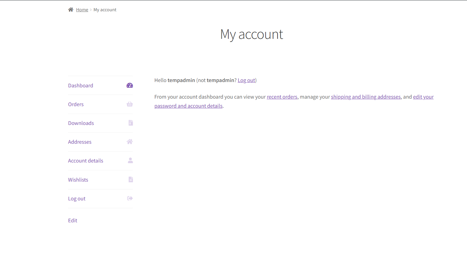 2. Go to the My Account page. Navigate to the Wishlist tab.