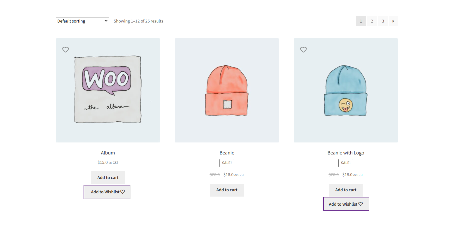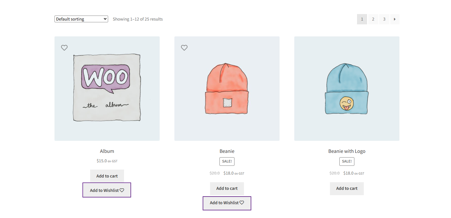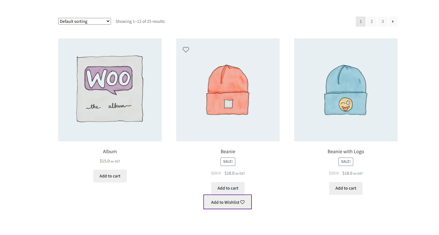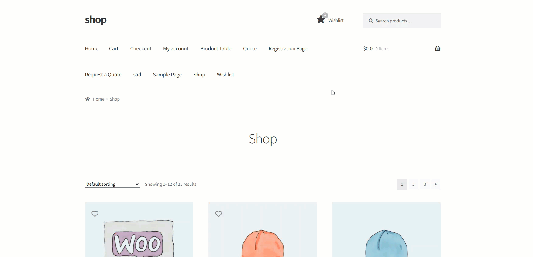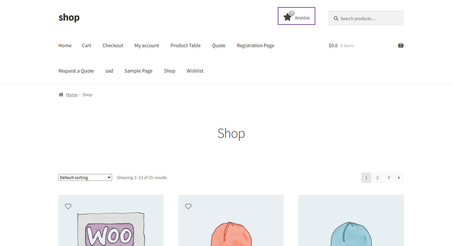 1. Go to the Shop Page. Add an item to the Wishlist.