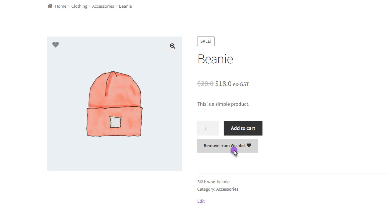 2. Go to the Product page. Click on the Add to Wishlist button.