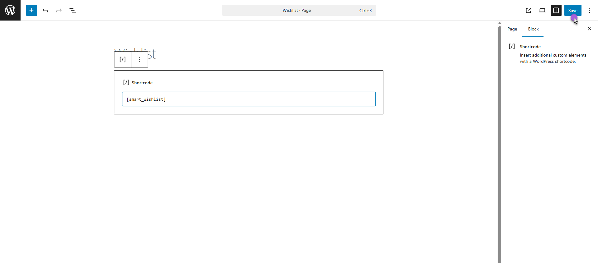 • Paste the shortcode into any page or post where you want the wishlist to appear.