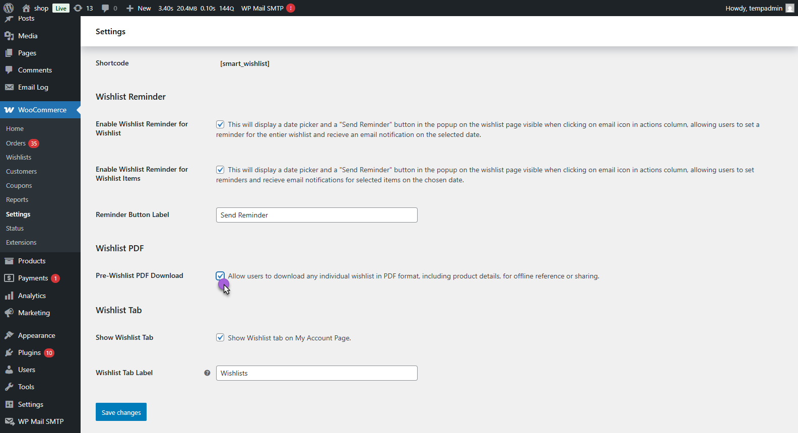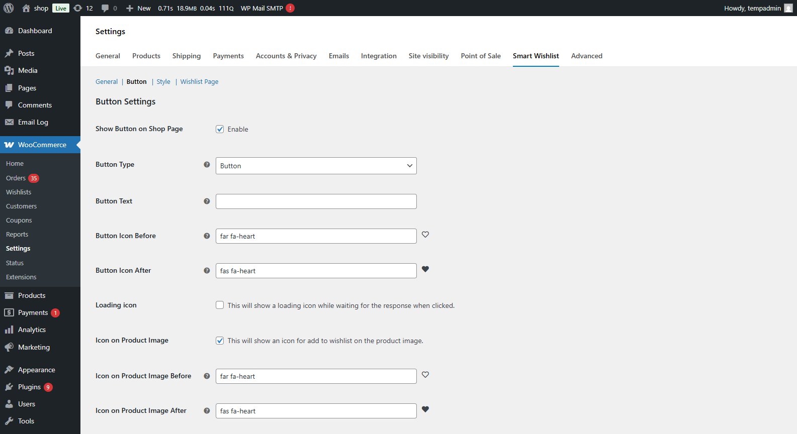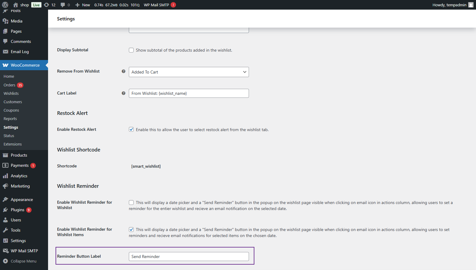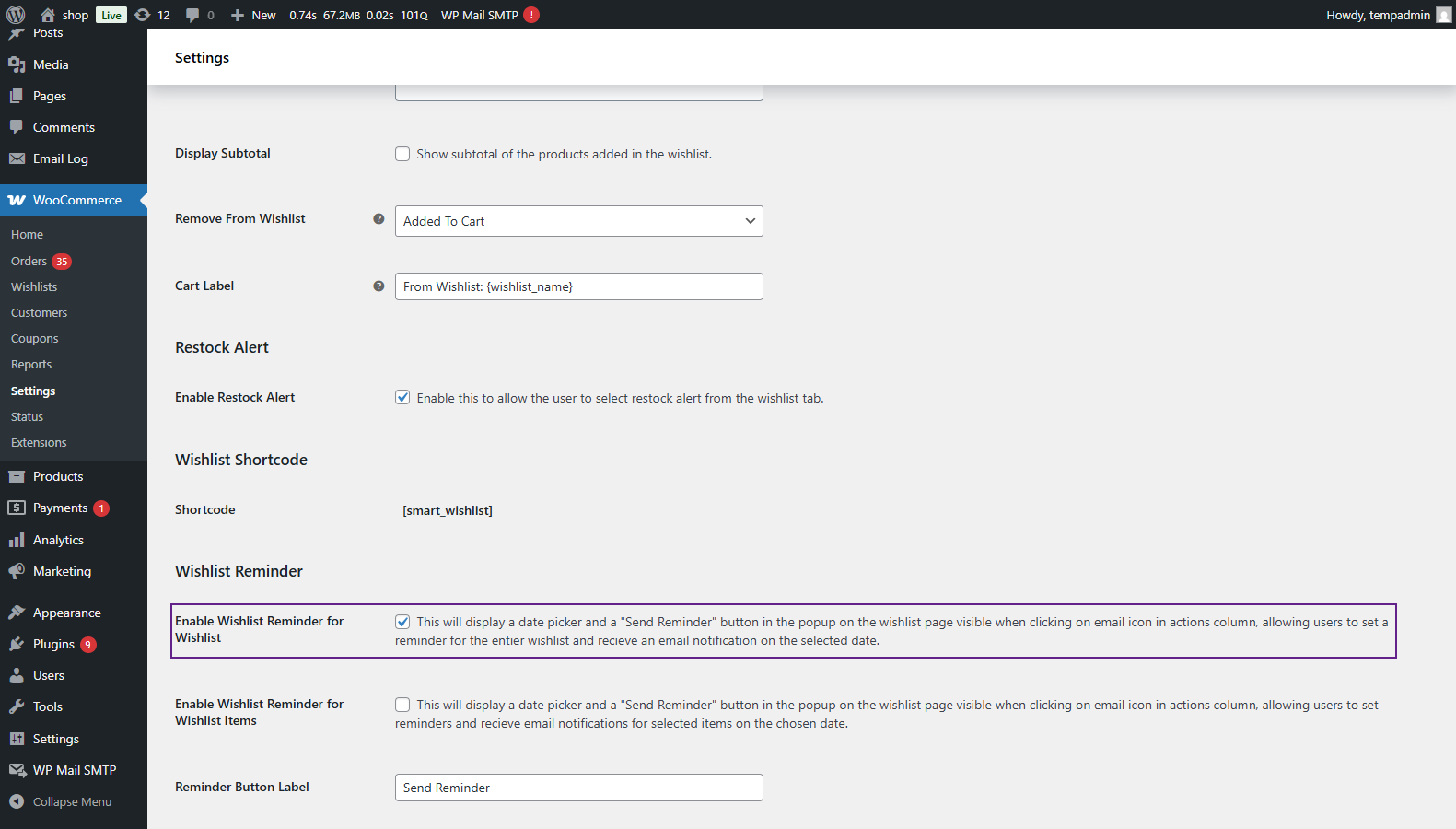 - WooCommerce > Settings > Smart Wishlist > General