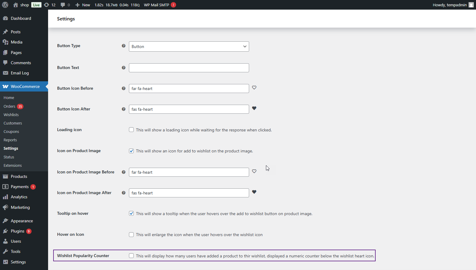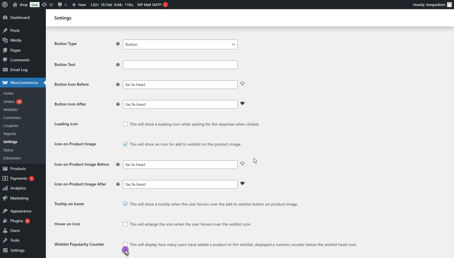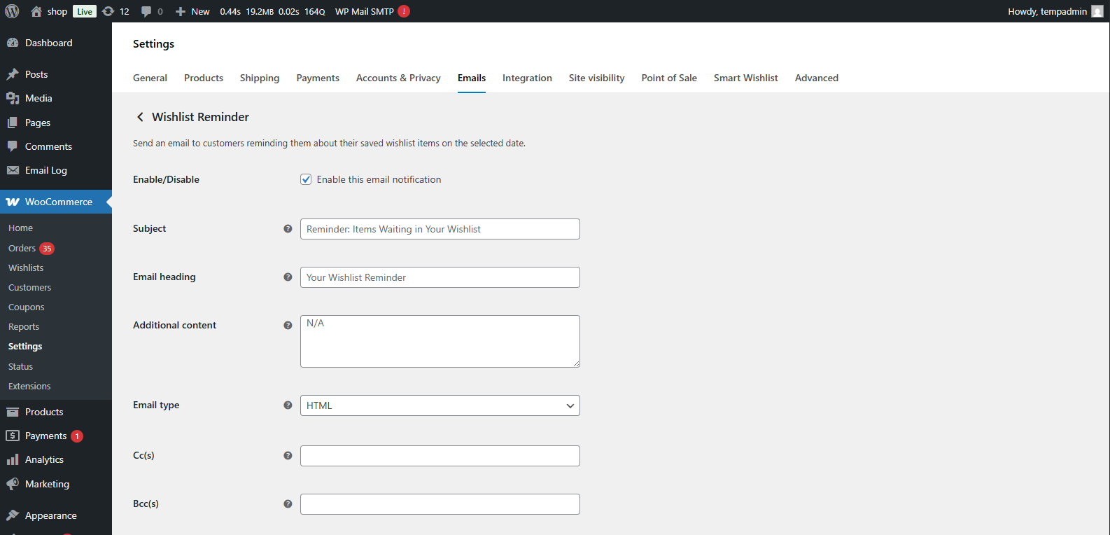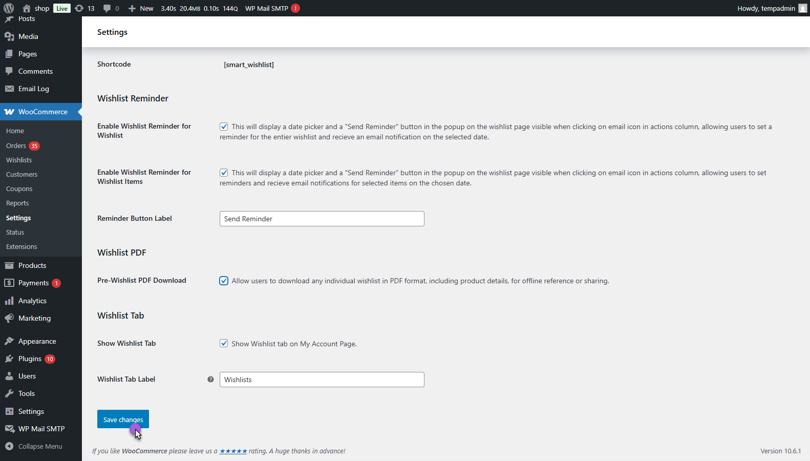 - WooCommerce > Settings > Smart Wishlist > General
