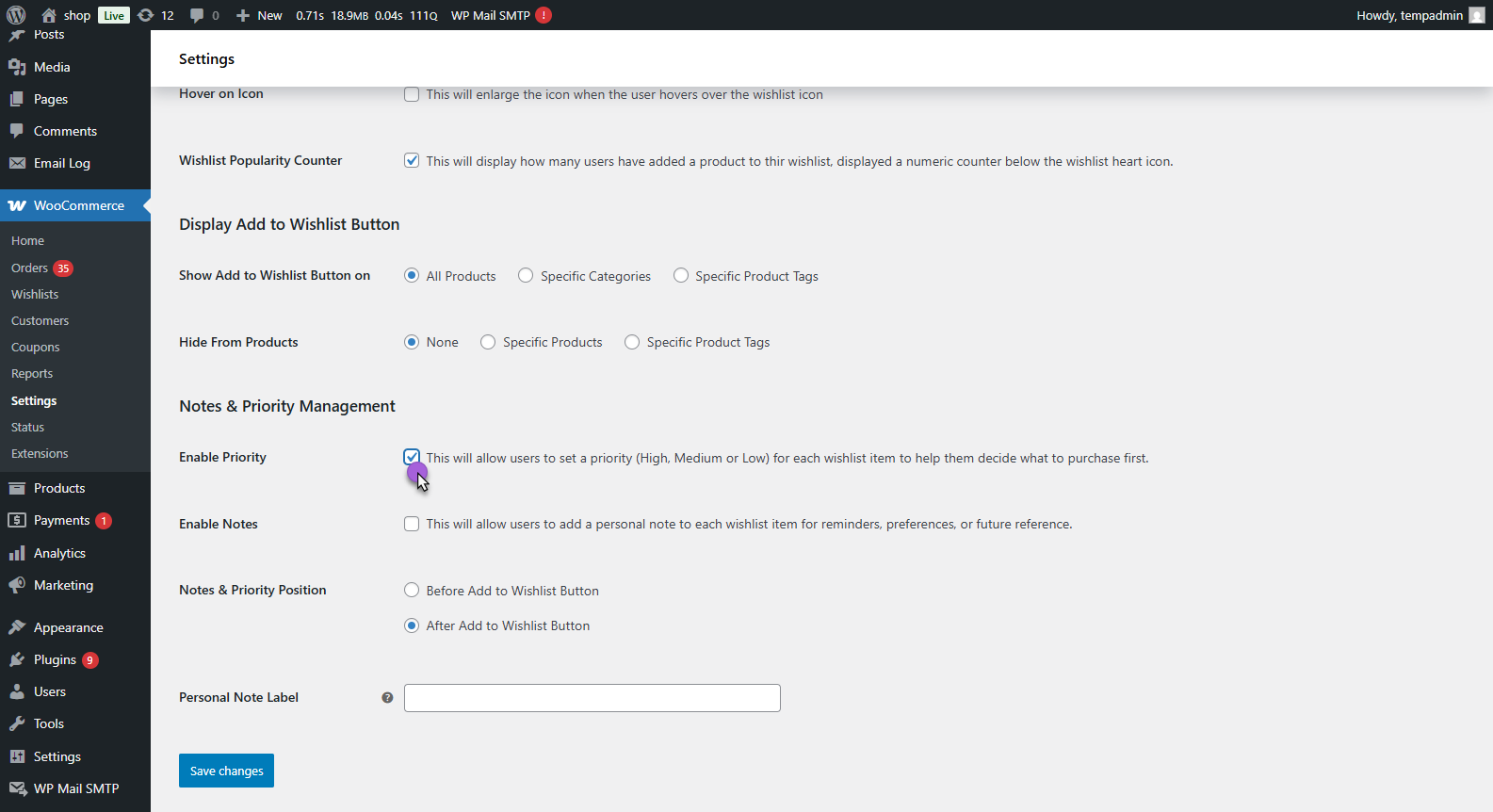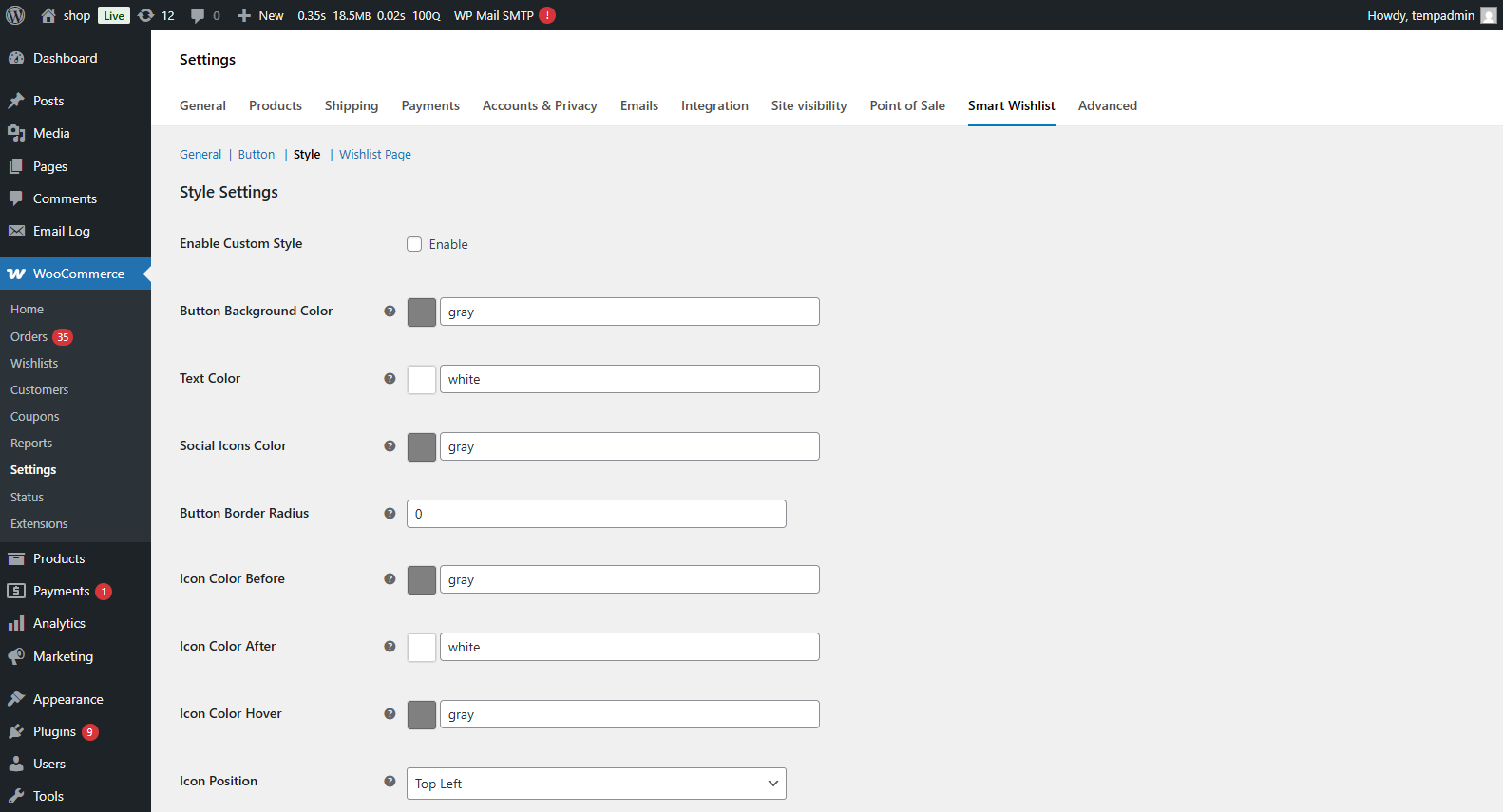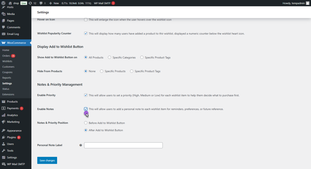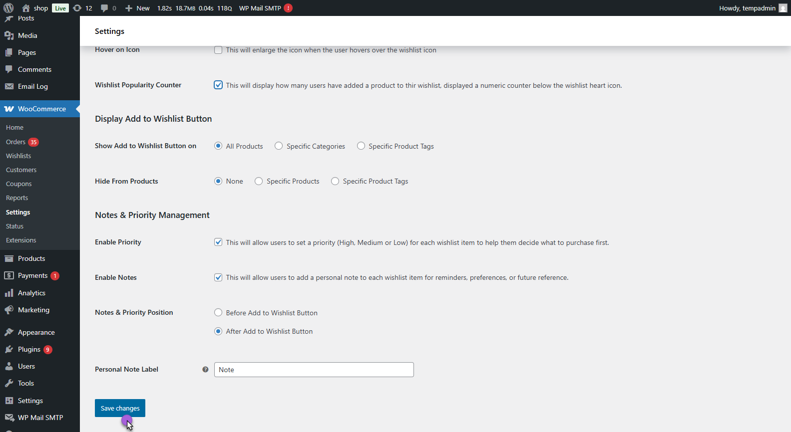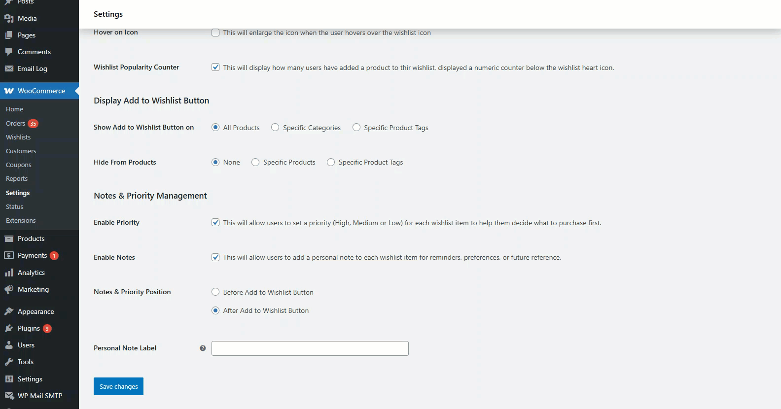 - WooCommerce > Settings > Smart Wishlist > General
