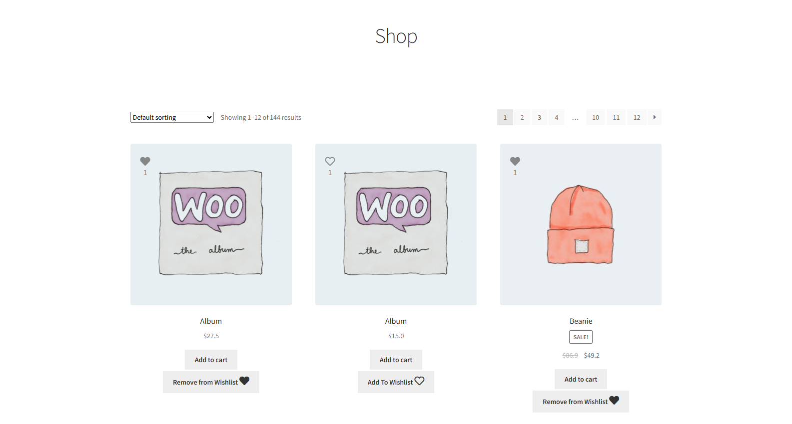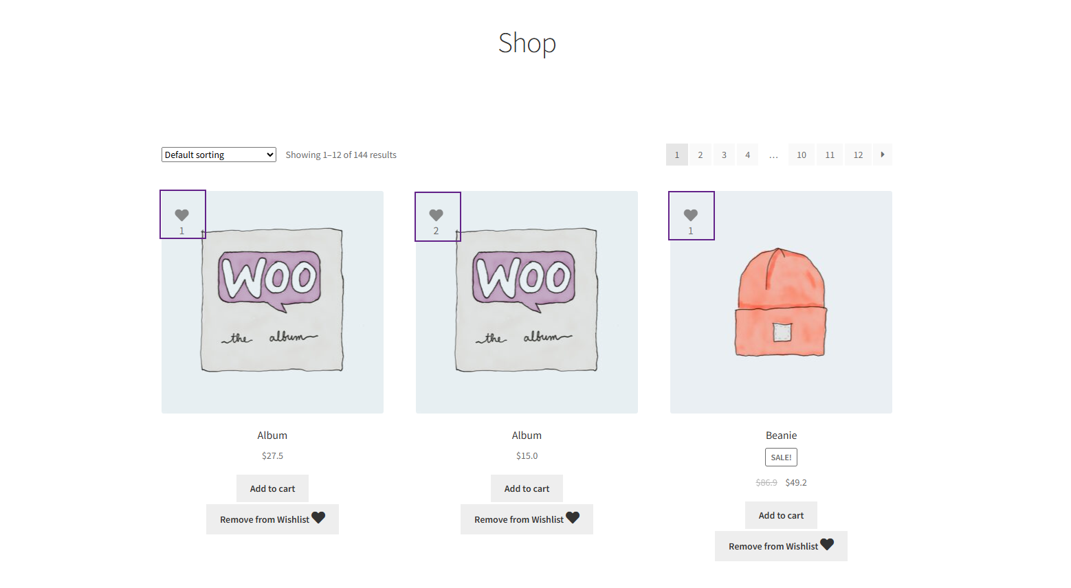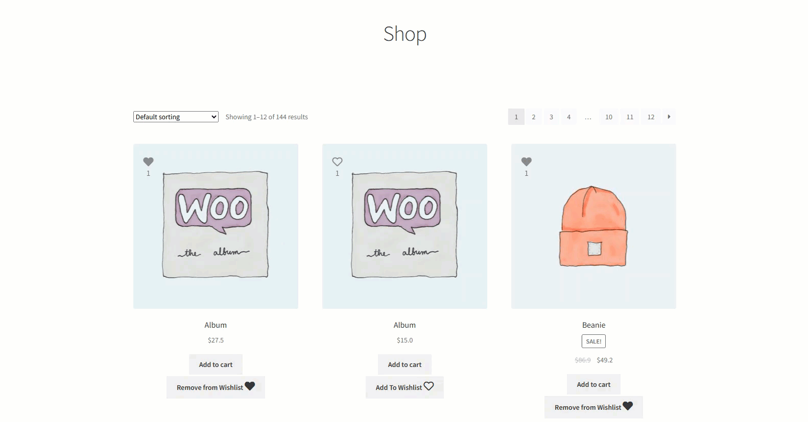 - Go to the Shop Page. Add an item to the Wishlist.