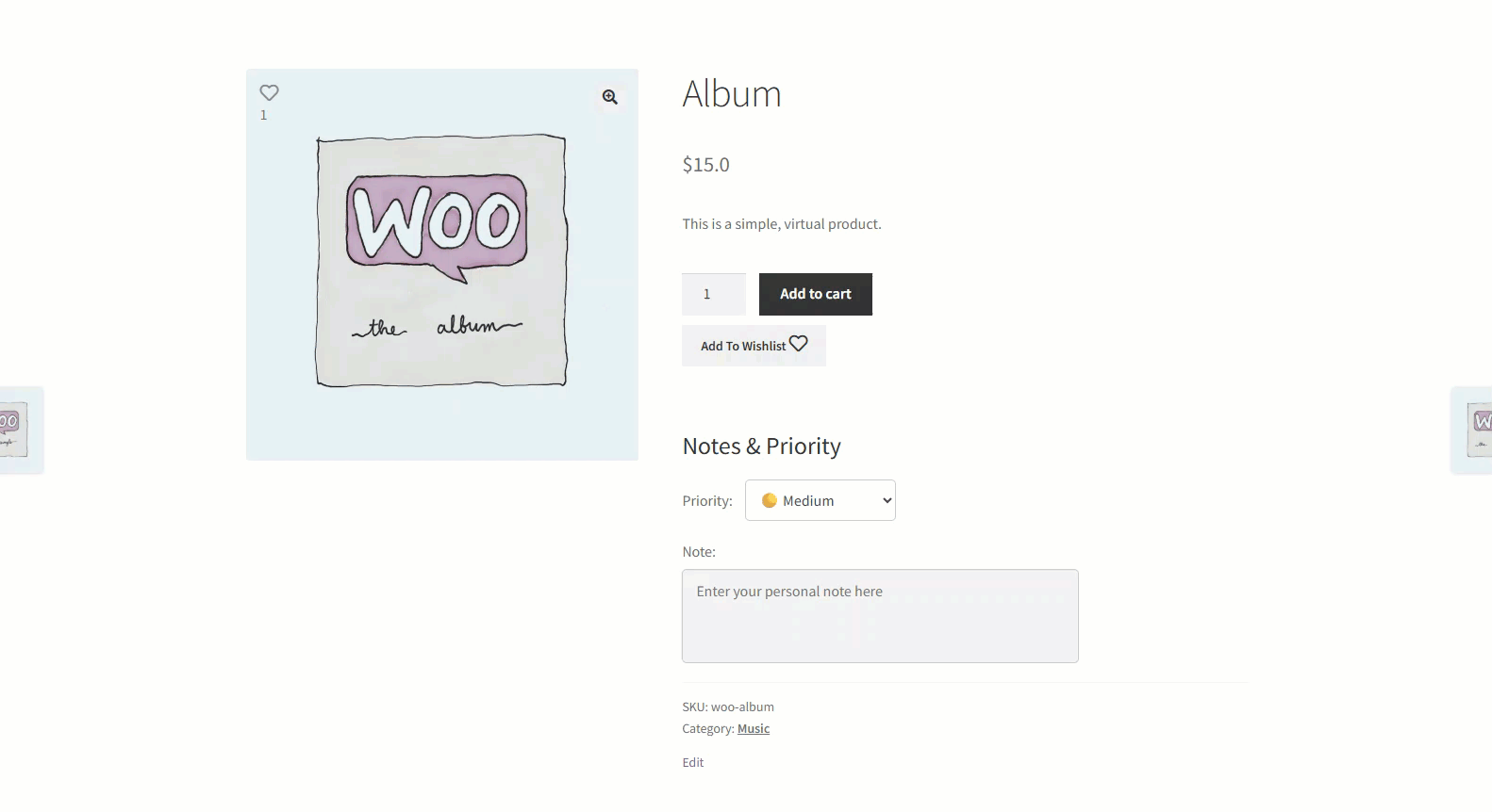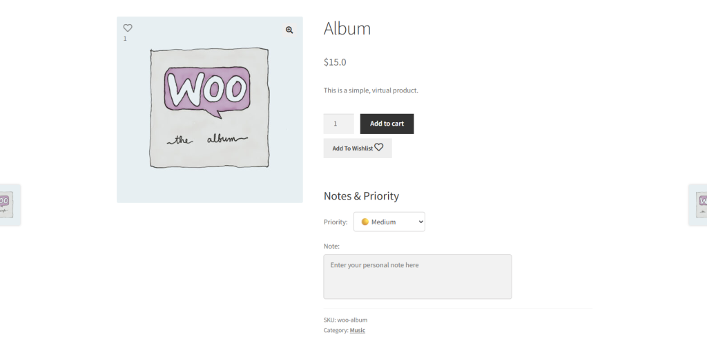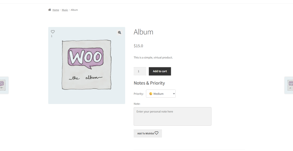 - Go to the Product page, where the “Add to Wishlist” button will appear.