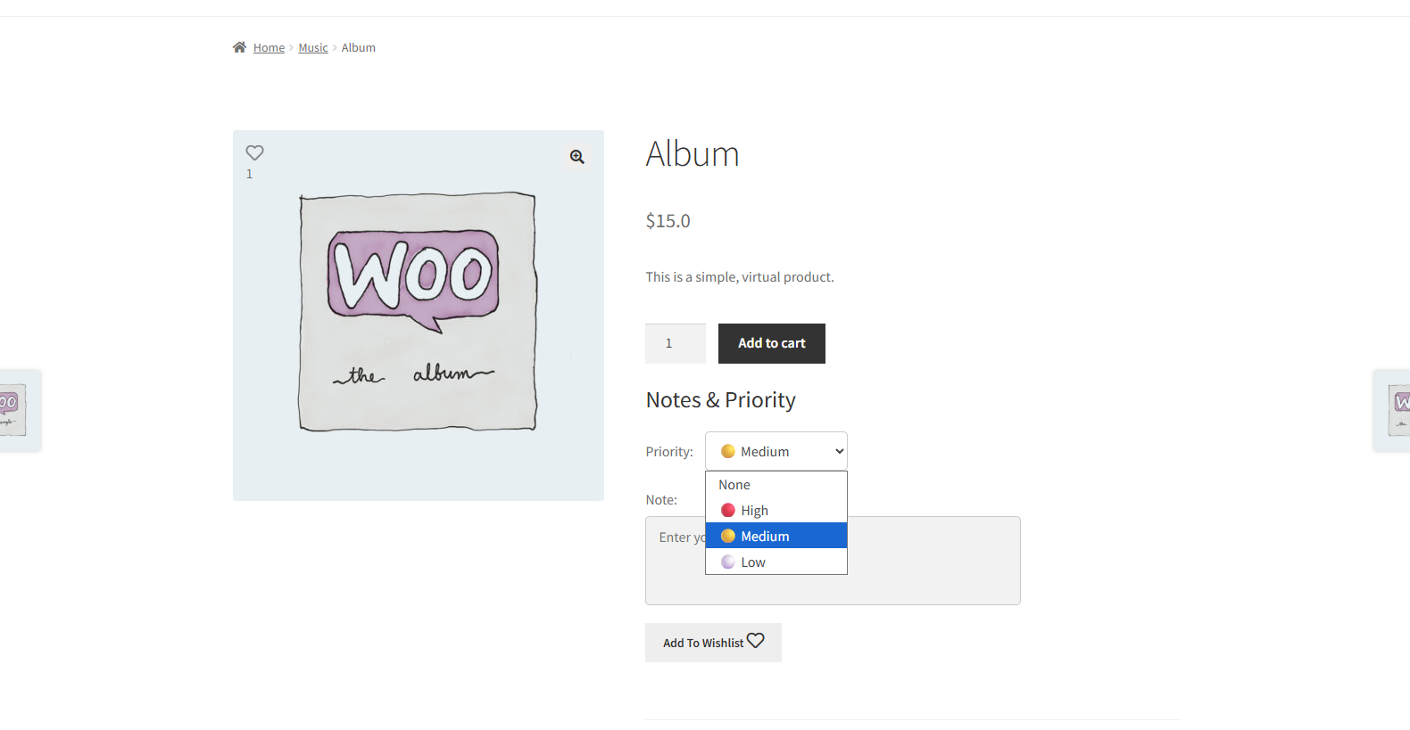 - Click on the Add to Wishlist button.