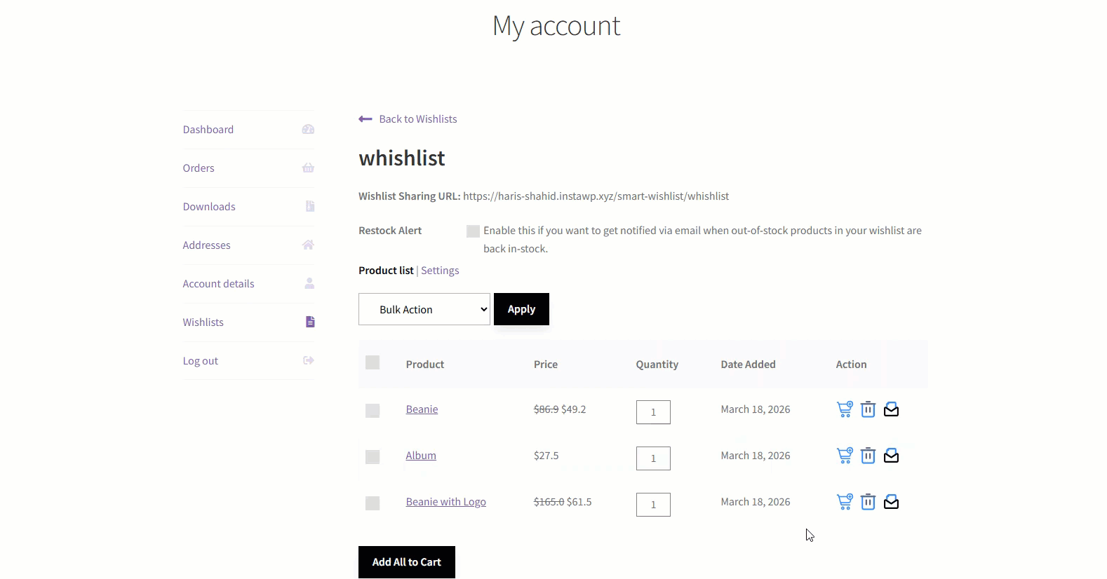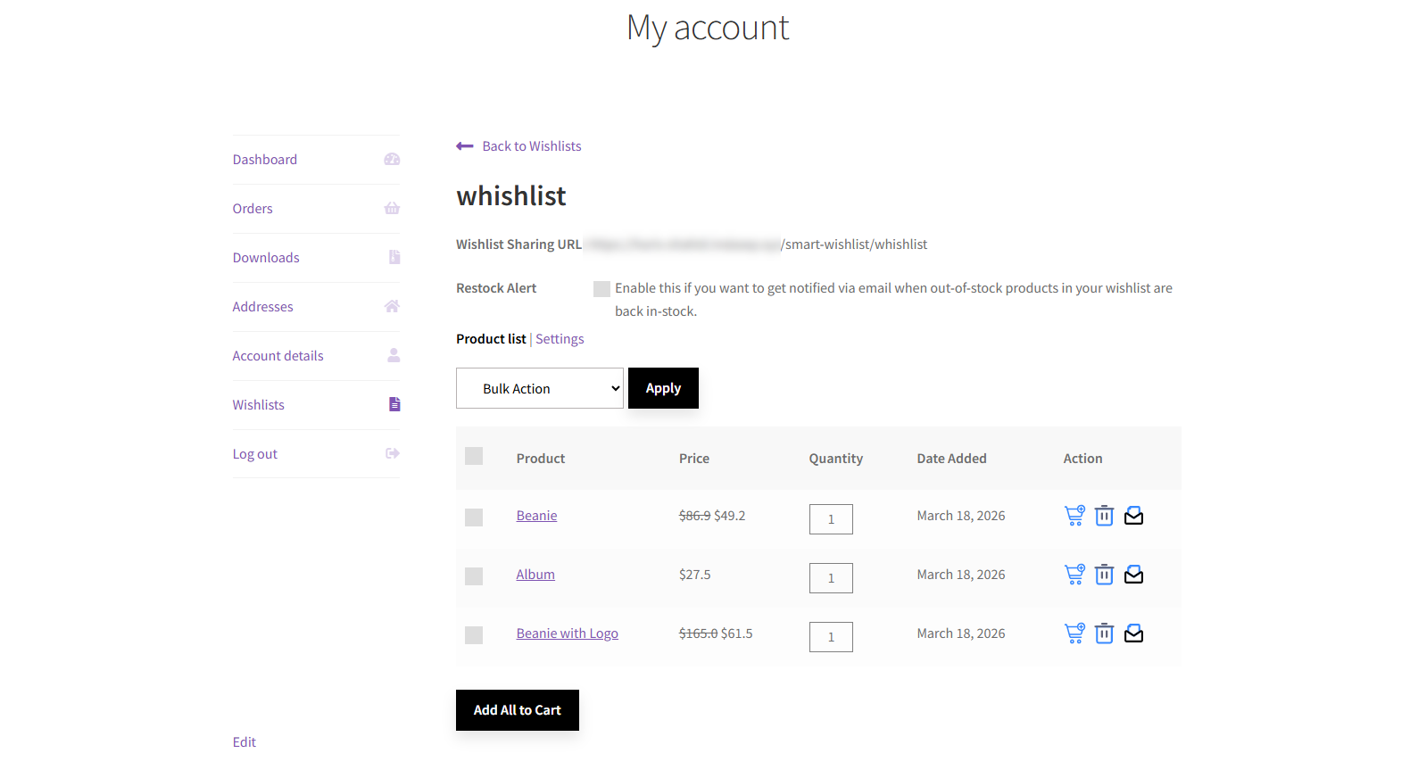 - Go to the My Account page. Navigate to the Wishlist tab.
