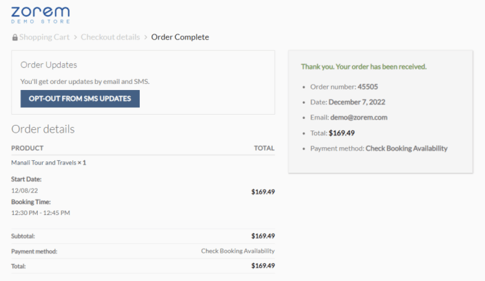 ↑ Back to topIf a customer is opted-in for SMS notifications and wants to opt-out, the customer can do so from the Order Confirmation page and View Order page.