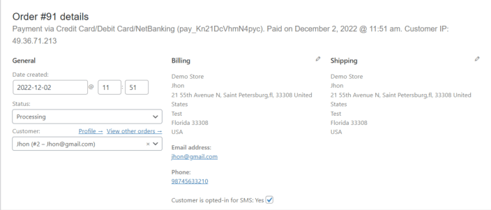 | Processing | SMS Notification sent when an order’s status changes to ‘Processing’. |