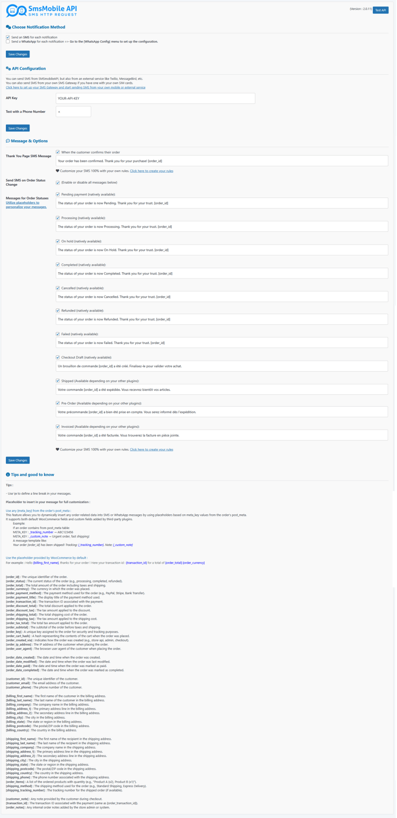 With the SMSMobileAPI WooCommerce plugin, you can: